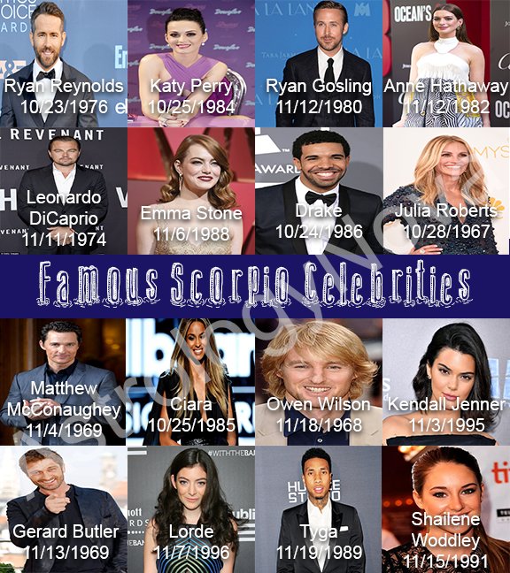 Famous Scorpios : List of 55 famous scorpio celebrities.